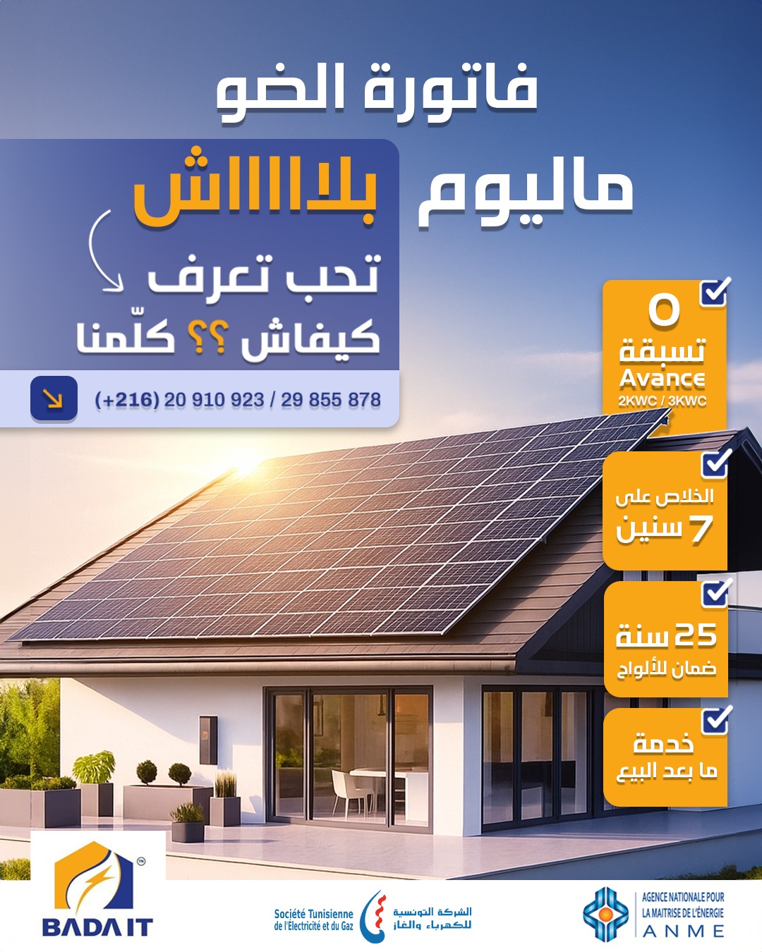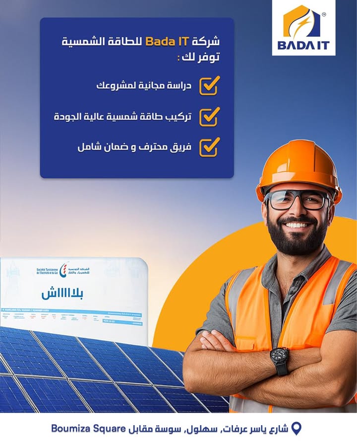 BADA IT is a Sousse-based company active in solar / photovoltaic solutions. Advery partnered with the brand to create conversion-focused creatives—one promo flyer, two social media posts, a Reels video, and paid social ads—built to increase local visibility and drive qualified inquiries.