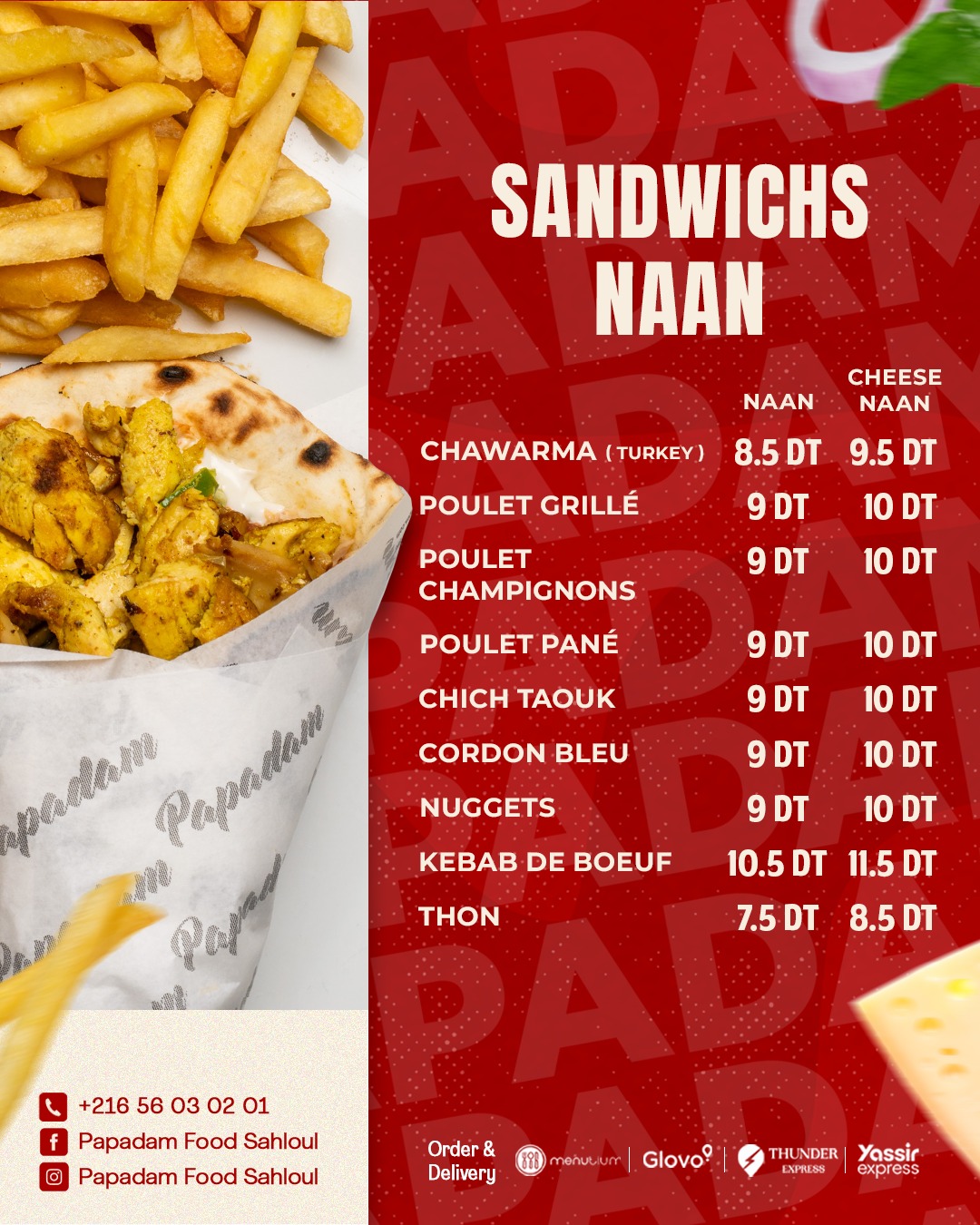 The focus was simple: make the products unmistakable, make offers instantly clear, and keep Papadam top-of-mind in Sousse—especially for cheese naan lovers.